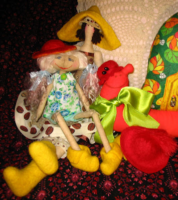 Эту девушку я давно сшила, но сидела она у меня неодетая. Выкройка садовницы, которая на ТИЛЬДОМАНИИ названа со словом "кантри", а я называю ее ПЕРВОЙ САДОВНИЦЕЙ. Это выкройка была намного раньше той, которая потом появилась в комбинезоне.Никогда я за эту выкройку не бралась и больше, думаю, не возьмусь. Очень мне у нее ноги не понравились.Ну или когда решу куклу в брючках делать, чтоб эти палки никто не видел.Но вчера решила доделать недоделки, нарядила ее в колхозный наряд.Рост получился 54см.